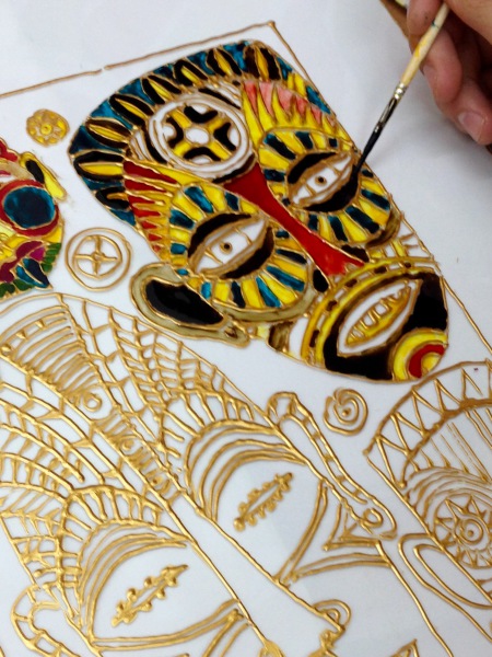 Lubimy tę technikę plastyczną .Przynosi szybki i kolorowy efekt. Malujemy prace przypominające witraże, ale również herby naszych ulubionych drużyn sportowych, maskotki i kwiaty. Czasami tworzymy własne projekty, co wymaga od nas sporo zaangażowania. Innym razem korzystamy z gotowych szablonów- wówczas wystarczy odrysować wzór konturówką a następnie nanieść kolorowe farby do szkła. Wymaga to dokładności i precyzji. Oto niektóre z naszych „dzieł”.